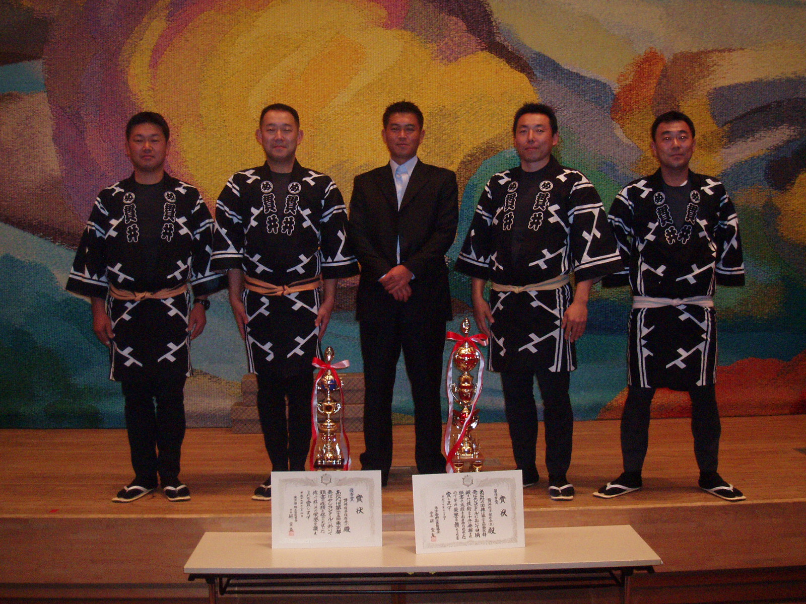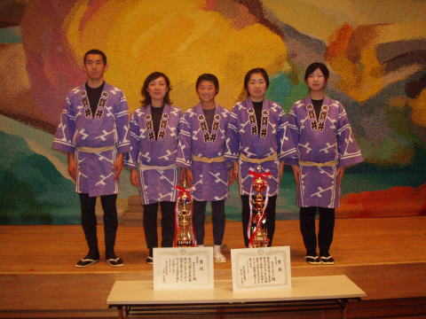 今回優秀賞を獲得した5人です。二代目会長に厳しい指導を受け、優秀賞を頂きました。練習時と比べるとかなり表情が明るくなっています。