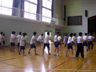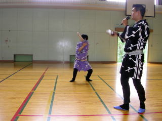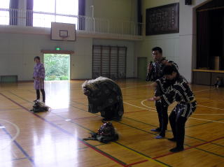 最後は先生も含め全員でひょっとこ・獅子・天狐を踊って、体験学習を終了しました。 |