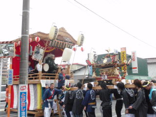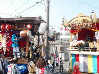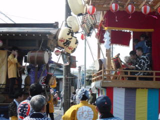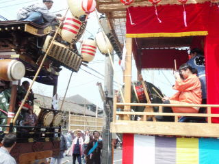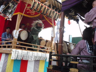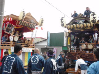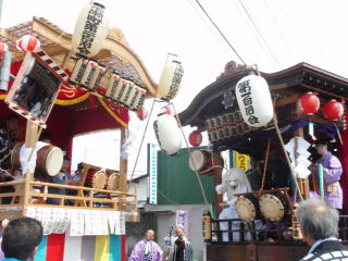 舞台では他の自治会のお囃子と競り合いをしたり、お御輿がきたときに迎え囃子として演奏したり、