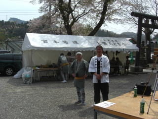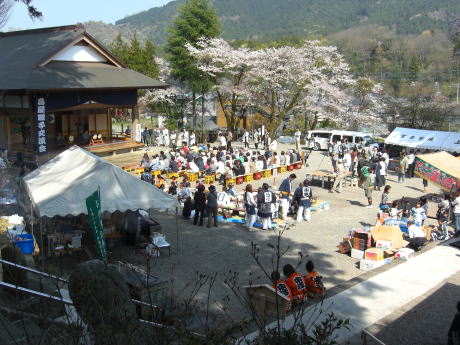 当日は快晴、桜が満開の神社境内は、一般の方々もたくさん集まっていました。