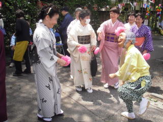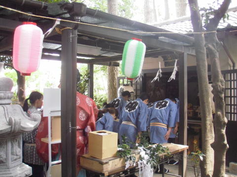 午前中に突然の雨が降り、例大祭への影響を心配しましたが、例大祭開始の午前11時には雨もあがり、とても暑い一日となりました。