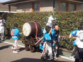 子供たちも汗をかきながら、一生懸命太鼓を引っ張ります(^^)