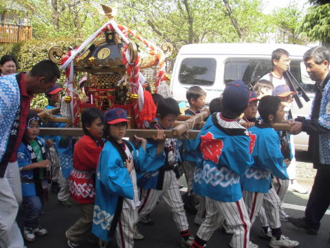 地元野球チームの子供たちを中心に、御神輿をかつぎます!ガンバレ〜!