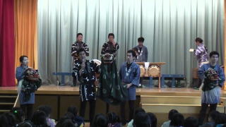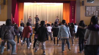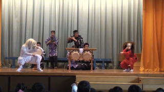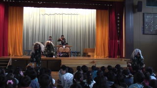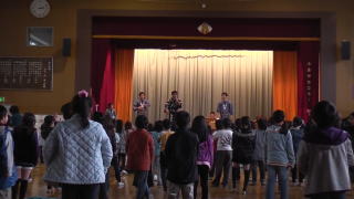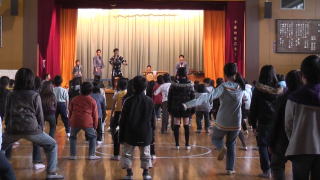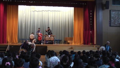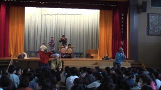 | 3年生、4年生だと、まだそんなに照れもなく「やってみよう!」と踊ってくれるので、面白い動きに盛り上がります。この踊りにはこういう意味があります、という説明にもひとつひとつ驚いて理解して動いてみて・・・自分の変な踊りに笑ったり、できた!と隣の子に見せたり、体験することできっと子ども達もお囃子を身近なものに感じることができたのではないでしょうか。 |