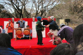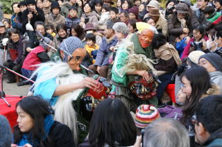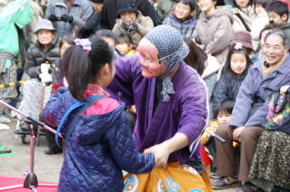 | ひょっとこ達が帰っていくときに、温かい拍手をいただきました。 |