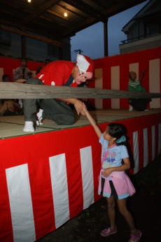 町内を巡行したあと、神明宮に戻り、子ども達はゲーム大会などを楽しみました。