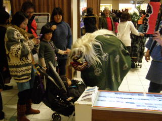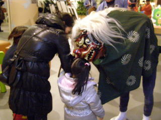 ママトコでのお正月企画として午後1時と3時の2回、獅子舞がママトコ内と3階店内を練り歩きました。
