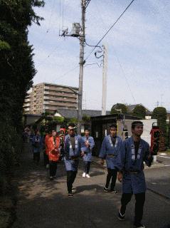 子ども神輿が町内を廻るときには、私たちも一緒に巡行しました。