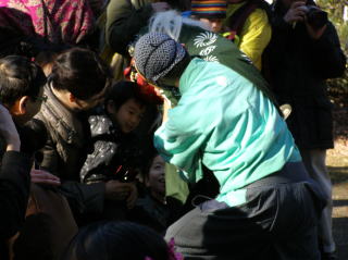 風がやや強く、とても肌寒い日でしたが、10時半と13時半の2回公演とも多くの方が集まってくださいました。なかには30分ぐらい前から座って待っていてくださる人もいて、大変嬉しく思いました。 |