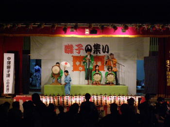 中沢三嶋神社祭礼にて、中澤囃子連様が近隣の祭囃子愛好の皆様を交え、毎年開催している集いです。