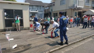 | 消防署の方に丁寧に使い方を教わり、実践しました。 |