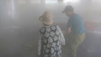 大澤氏(防災会副会長、貫井囃子会長)お手製の煙ハウスです。