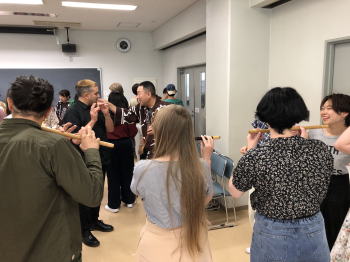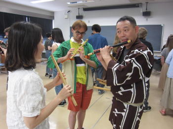 皆さん、どの楽器・道具にも興味津々で、積極的に参加してくださいました。