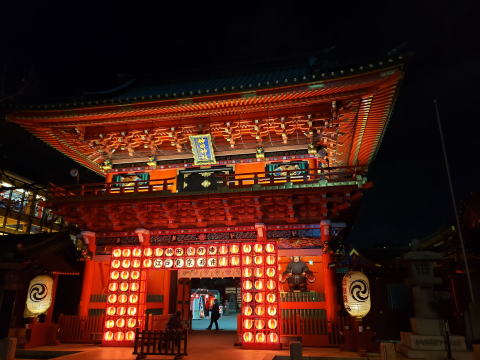 神社では夜市も開かれており、平日の夜でしたが、人がたくさんいました。