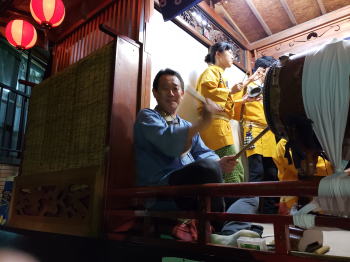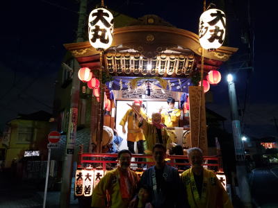 大丸囃子保存会様の山車が巡行を終え、神社に戻ってきたところ