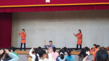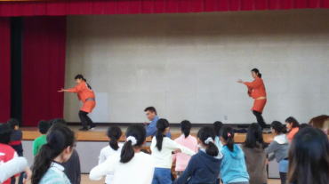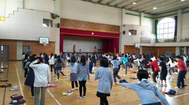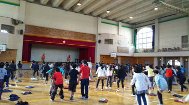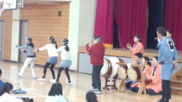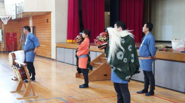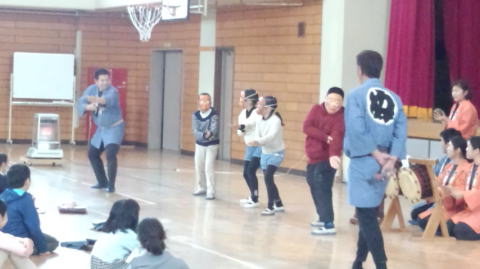 踊り体験の最後には、立候補の生徒さんがお面をつけて披露してくれました。