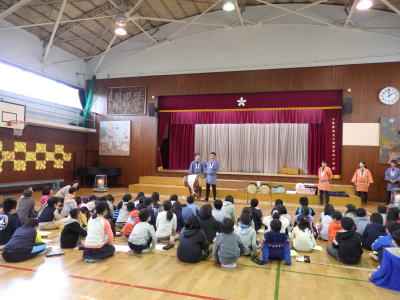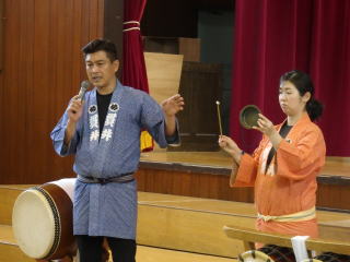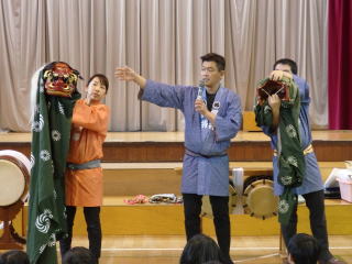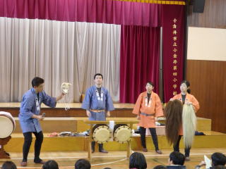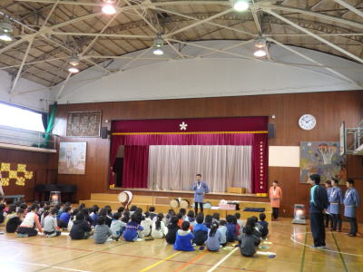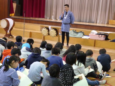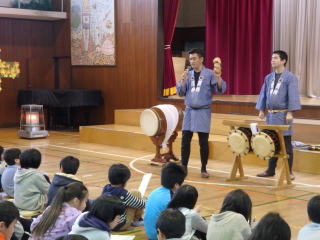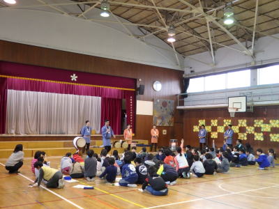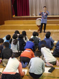 2月25日(木)、小金井市立小金井第四小学校の体育館にて、お囃子教室を行いました。