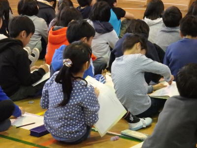 寒い体育館でしたが、みんな集中して話を聞き、一生懸命メモをとっていました。