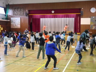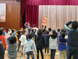 第四小学校の3年生はとても元気があって、踊り体験でも「まずはやってみよう」と