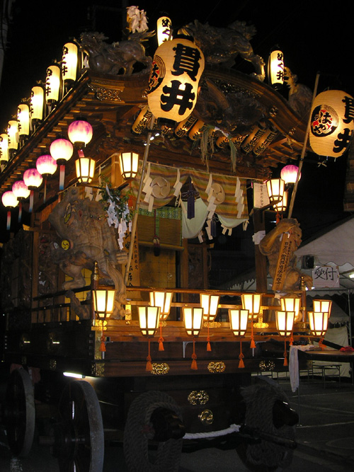 ライトアップされた夜の山車全景