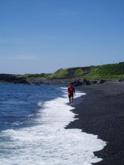 この浜はブラックサンドビーチと呼ばれ、伝説では事代主命(ことしろぬしのみこと)がこの浜で刀を洗い、その錆が落ちて砂浜が赤黒く変色したといわれているそうです。