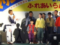 写真左、司会を努めるのは浴衣姿のお二人です。左側の男性司会者の方が、このフェスティバルの実行委員長でもあります、飯沼義仁さんです。飯沼さんとお会いするのは、小金井市で行われた「小金井なかよし市民まつり」以来です。昼間、会場設営をしているところでお会いしたときには、このフェスティバルのことだけでなく、三宅島の色々なことを教えてくださいました。こうして伝統芸能を通して、都市同士、さらに人と人との交流がますます深まっていけば良いですね。 |
