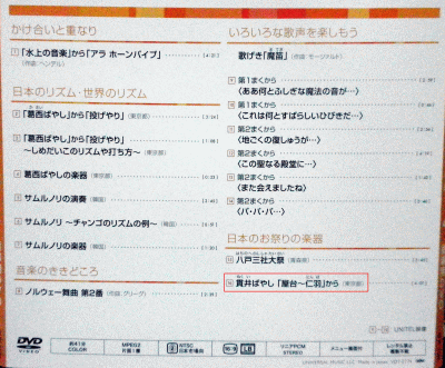 「音楽のおくりもの4 指導用DVD」に貫井囃子が収録さてれいます。