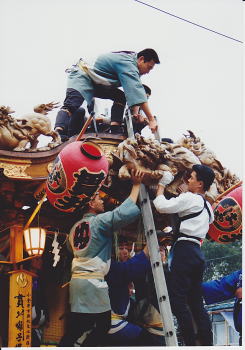 1994年、風神・雷神の彫り物が付き、より迫力ある山車になりました。