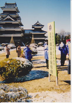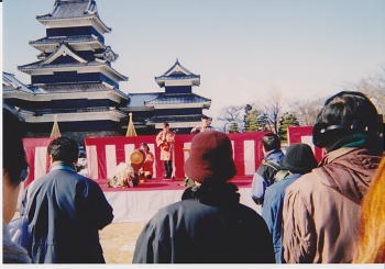 松本城の目の前でお囃子を演奏するという