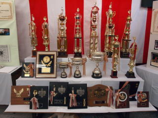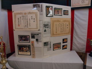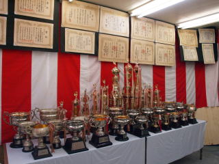 | 祭礼当日は、賞状、トロフィー、盾の一部を展示しました。 |