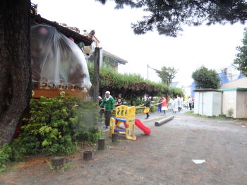 宵宮の時間までに止むことを願って、準備を進めます。