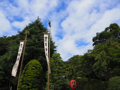青空の中、坂上の御神輿、坂下の御神輿が出発。