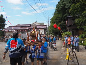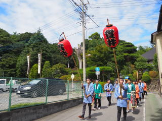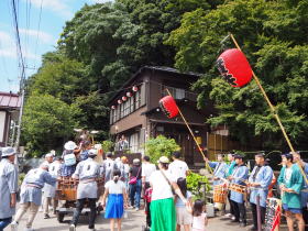 正午に子ども神輿を送り囃子でお見送りにいってまいりました。