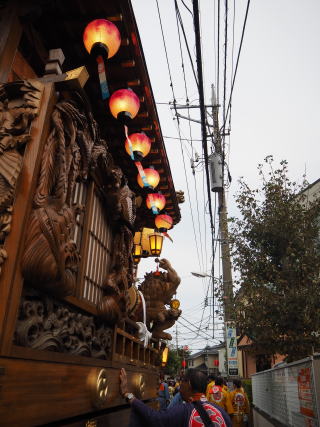 提灯に灯が燈り、山車は貫井神社へ向かって最後の巡行です!